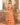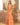 Peach layered georgette sari with a pre-stitched and pre-draped pallu with gold and rose gold 3D hand embroidery & a matching hand embellished blouse with a tie back.