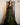 Green gown with an asymmetric overlay in organza and silk fabric and an attached waist belt.