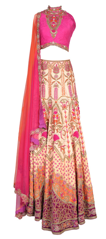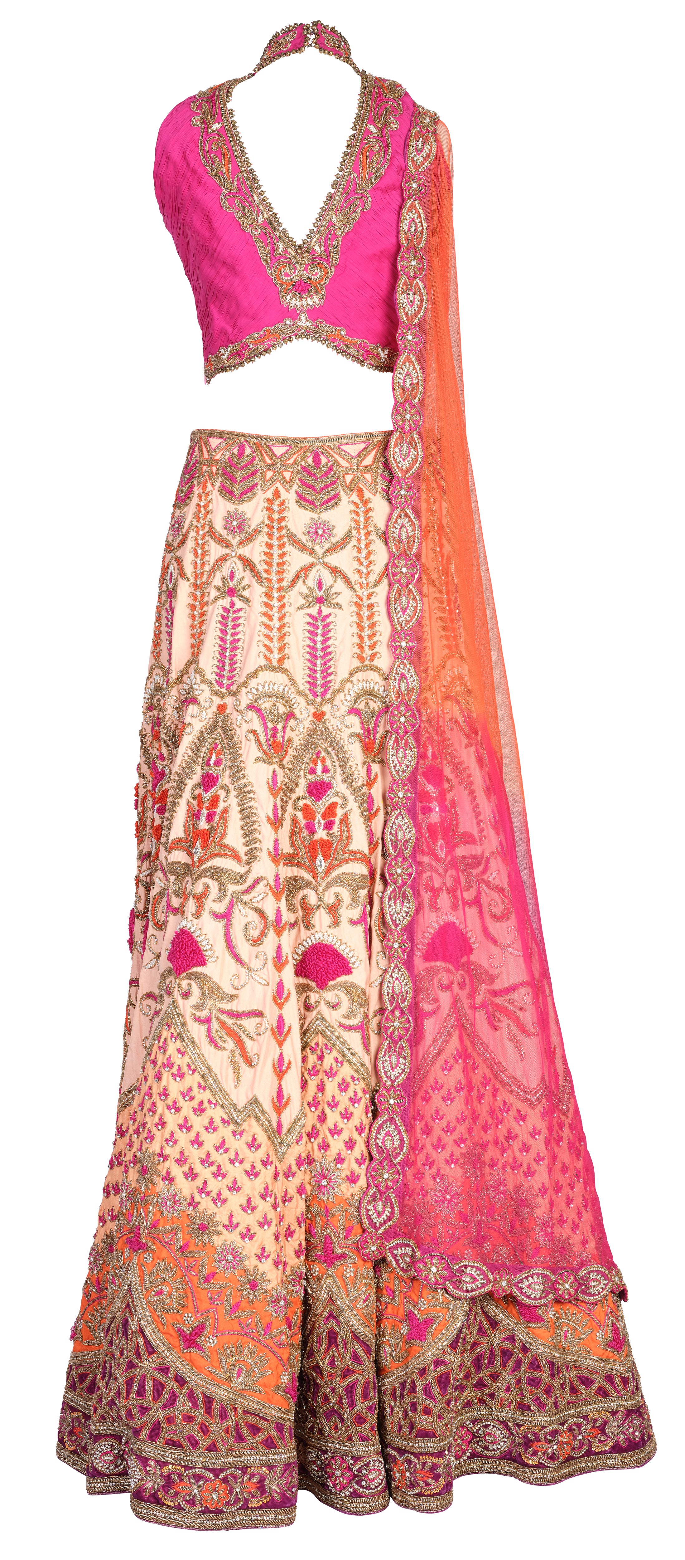 Multi-tone heavy Lehenga with embroidery and crystal work from Ami Bridal Couture