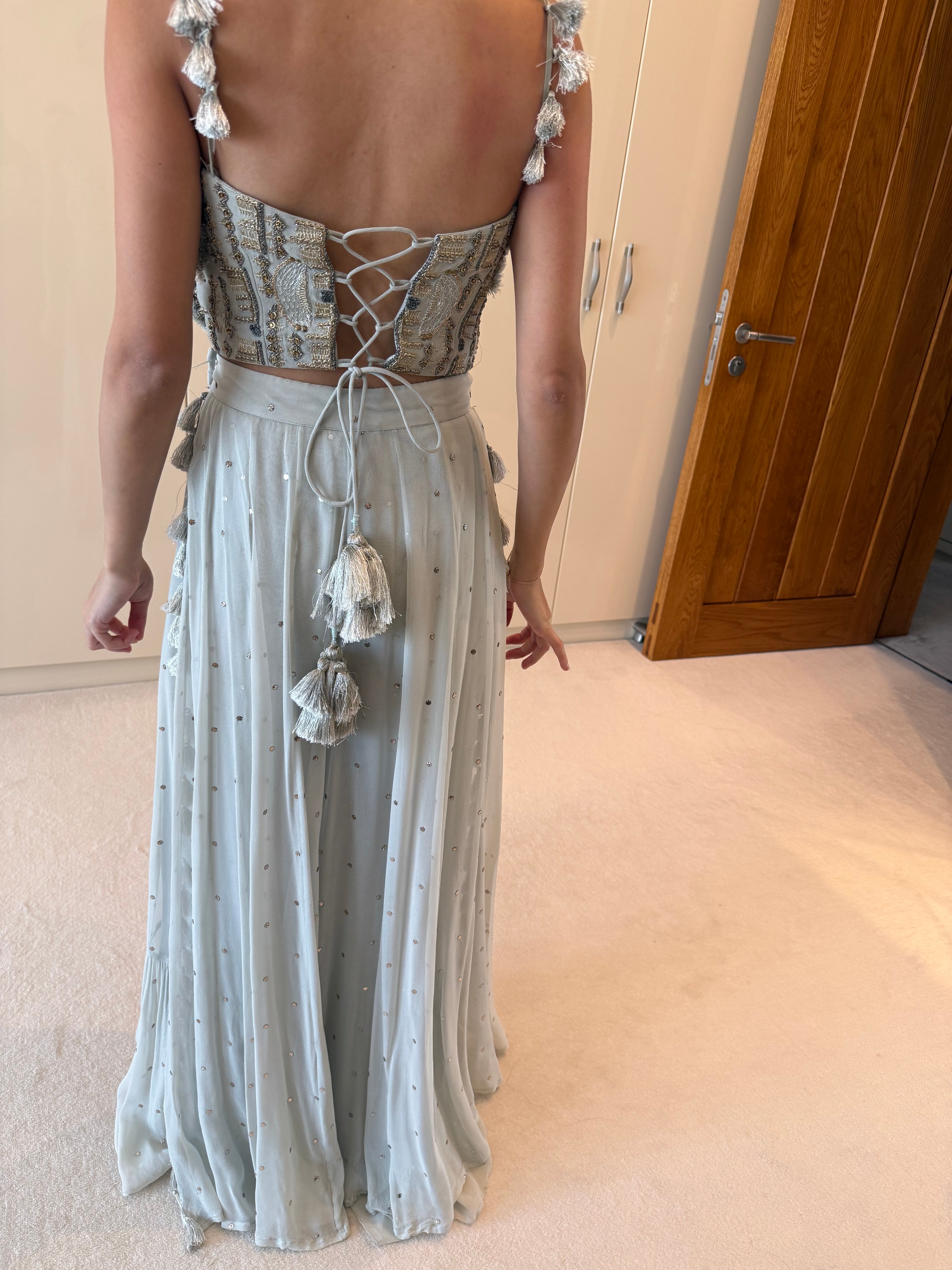 Super gorgeous light blue Payal Singhal lightweight top and trousers set! It's super comfortable and looks so good on!