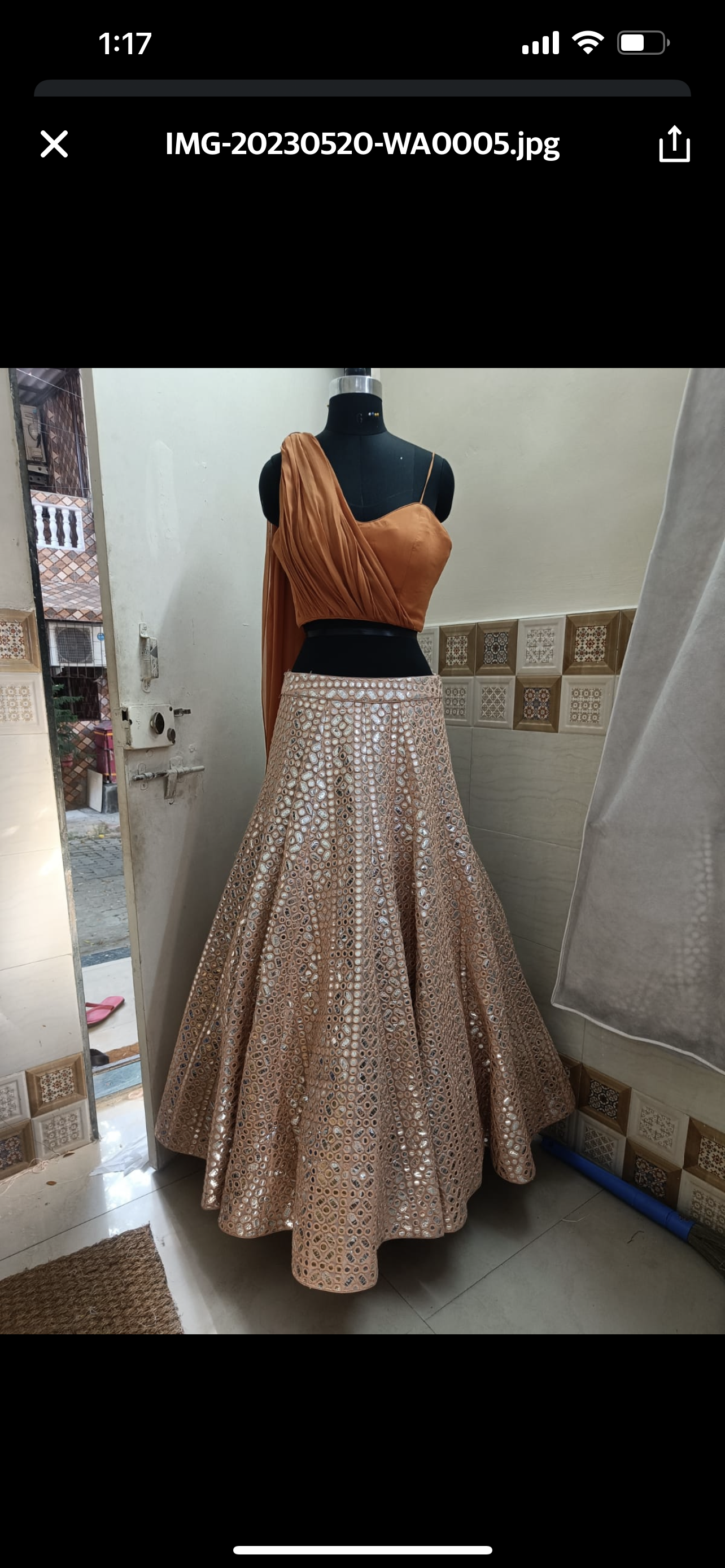 This beautiful lehenga was custom-made by Fabulicious Fashion based on design that the buyer saw. Worn only once as a wedding guest, this piece is in excellent condition and one of a kind.