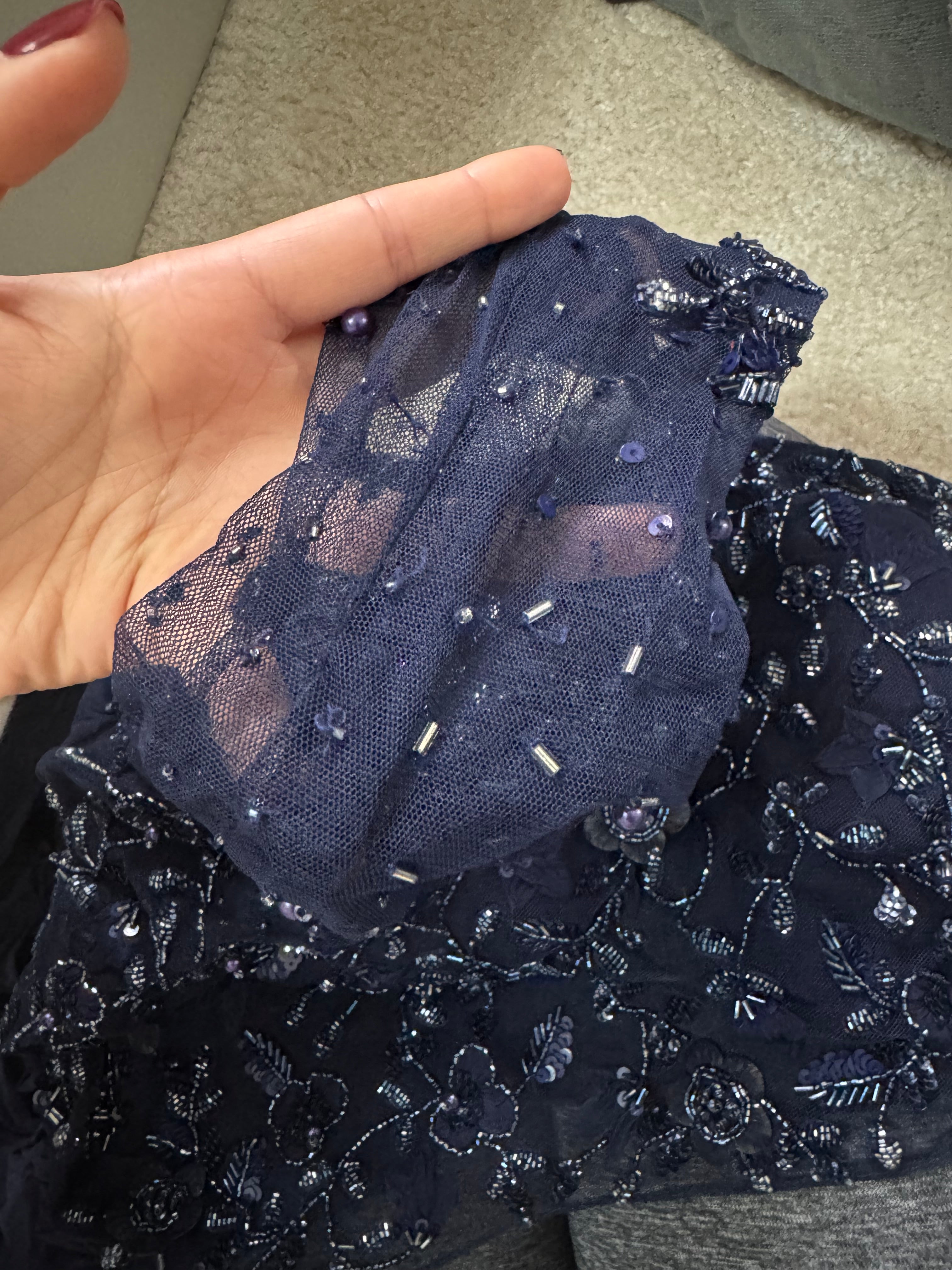 Minor pulls in thread / few small sequins missing (as shown in photo) but not visible to the eye when worn