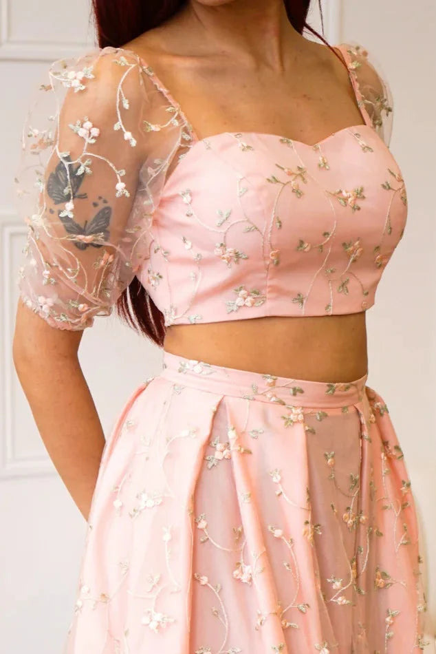 The ultimate elegant staple crop top you need to pair with our iconic skirt in peach! This new style offers a soft sweetheart neckline paired with extravagant cuffed balloon sleeves. The Sweetheart Long Puff Sleeve Crop Top style can also be worn on or off the shoulder; giving you that extra glam you need!
