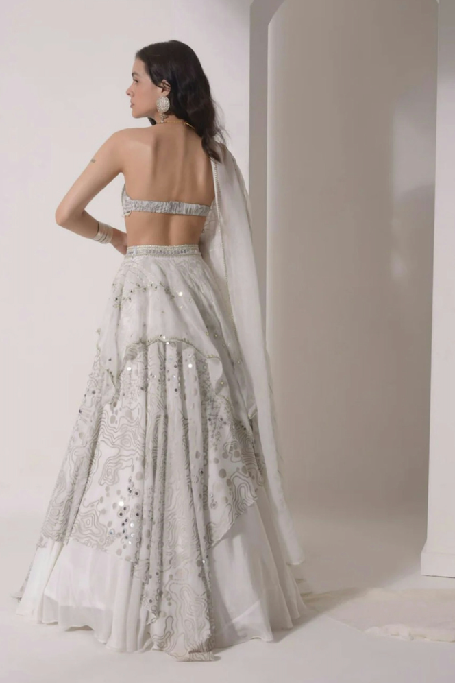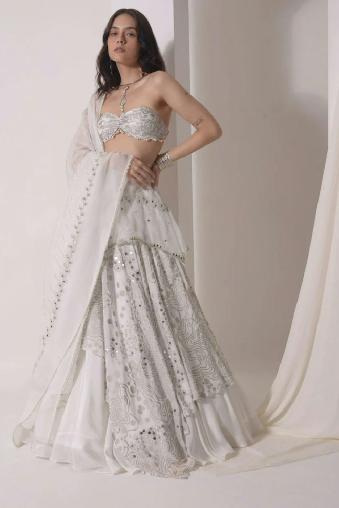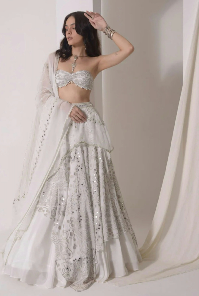 This gorgeous and unique white and silver Lehenga worn only once to a wedding reception - it is truly stunning and makes anyone feel incredible while wearing it!