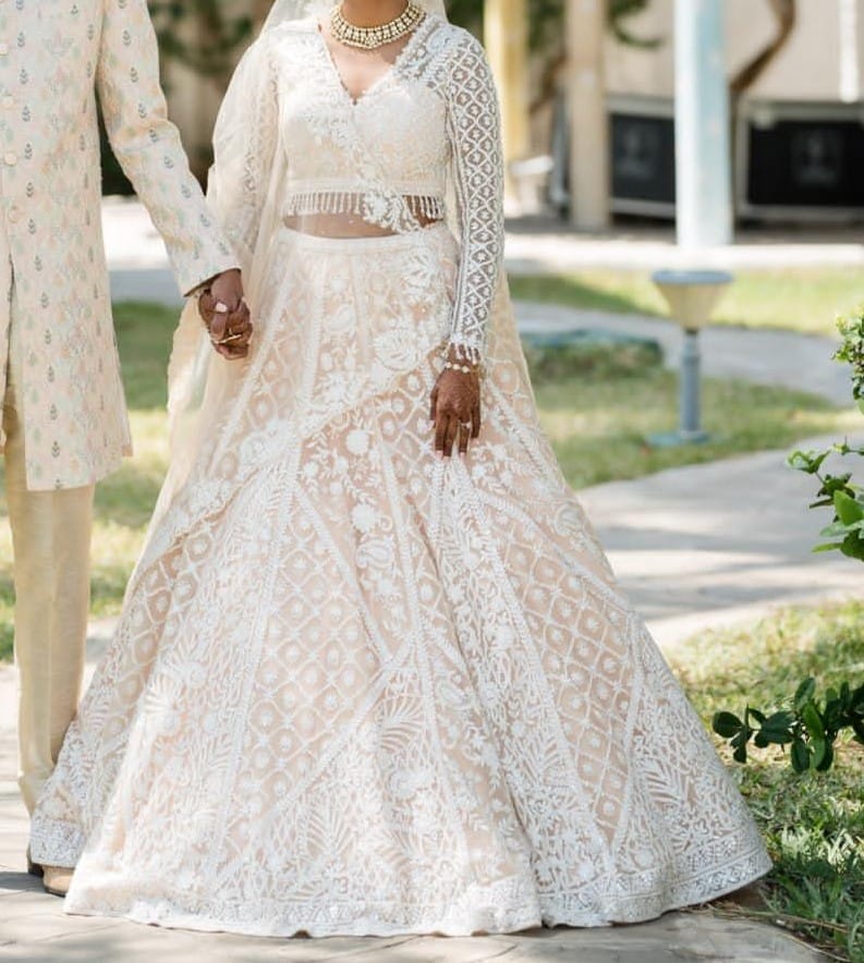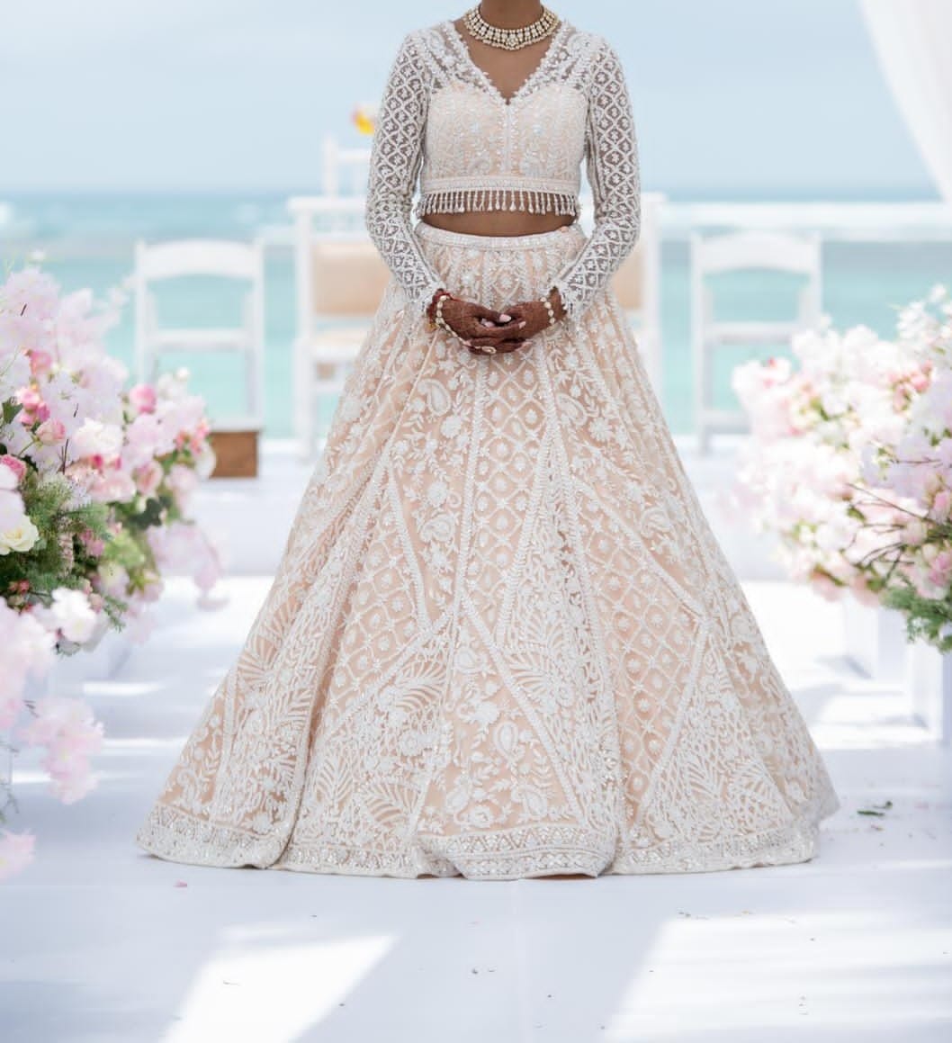 This stunning Seema Gujral White Lehenga is perfect for a Hindu wedding ceremony. The fit is flattering and comfortable, which allows movement while remaining structured. It would suit a UK size 8-10. It’s in excellent condition and ready to make another bride feel just as special!